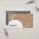 Eine Visitenkarten-Vorlage mit weißem, halbkreisförmigem Panel unten, verlassen für Ihren Firmennamen und Geschäftstyp. Das halbrunde Panel wird auf einem Foto- oder Kunstwerkhintergrund platziert (der auch geändert werden kann). Name und andere Kontaktdaten auf der Rückseite.