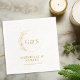 Diese elegante Goldfolie ist sauber und minimalistisch gestaltet und mit einer Grafik eines leafy Halbkranzes und der Paare Monogramm, Namen und Hochzeitsdatum versehen.
