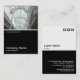 Eine Visitenkartenvorlage mit weißer, schwarzer Unterhälfte. Die Vorderseite besteht aus einem Foto oder Kunstwerk in der oberen Hälfte. Das gleiche Thema wird auf der Rückseite ohne das Bild wiederholt, sodass Raum für andere Details und weitere Anpassung. Das als Dekorationsmerkmal auf der Rückseite verwendete Quadrat-Motiv stammt aus einem der nützlichen Schriftart von Zazzle und kann als Dekorationsmerkmal verwendet oder durch Ihr eigenes Logo oder Dekor ersetzt werden.