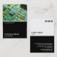 Eine Visitenkartenvorlage mit weißer, schwarzer Unterhälfte. Die Vorderseite besteht aus einem Foto oder Kunstwerk in der oberen Hälfte. Das gleiche Thema wird auf der Rückseite ohne das Bild wiederholt, sodass Raum für andere Details und weitere Anpassung. Das als Dekorationsmerkmal auf der Rückseite verwendete Quadrat-Motiv stammt aus einem der nützlichen Schriftart von Zazzle und kann als Dekorationsmerkmal verwendet oder durch Ihr eigenes Logo oder Dekor ersetzt werden.