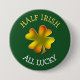Here's a great button for those who are only part Irish, tor ALL LUCKY! It feature a green, gold, and orange color burst shamrock at the center, with the text "Half Irish" in gold at the top, und "All Lucky" in white at the bottom. The image and text are placed on green background, of course.