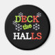 Roter, grüner und weißer Text mit weißen Schneeflocken lautet "Deck the Halls" auf T - Shirt, Totensäcken, Tasse, Magneten und vielem mehr.