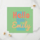 Hallo aus Vorlage Einladende Karte pastellfarben grün innen, Minze grün, Korallenorange, Pfirsich, blau für Teens oder Kinder helle Farbe bunte Spaß "Palm Federn" Stil Palm Federn Stil leicht personalisiert. Name Persönlicher Schriftart Stil, Größe und Farben kann geändert werden. Matching-Elemente verfügbar.