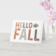 Dieses herbstbezogene Design begrüßt die Herbstsaison mit der Phrase "Hello Fall". Die Wörter sind in einem einfachen, aber optisch ansprechenden Layout angeordnet, wobei "Hello" über "Fall" platziert wird. Jeder Buchstabe in der Phrase wird in einem kühnen, blockigen Schriftart mit einer leicht bedrückten Textur präsentiert, sodass es ein rustikales, verwittertes Aussehen gibt, das das Herbstthema ergänzt.