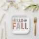 Dieses herbstbezogene Design begrüßt die Herbstsaison mit der Phrase "Hello Fall". Die Wörter sind in einem einfachen, aber optisch ansprechenden Layout angeordnet, wobei "Hello" über "Fall" platziert wird. Jeder Buchstabe in der Phrase wird in einem kühnen, blockigen Schriftart mit einer leicht bedrückten Textur präsentiert, sodass es ein rustikales, verwittertes Aussehen gibt, das das Herbstthema ergänzt.