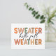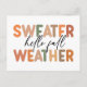 Dieses lebendige Herbstwerk besticht durch seine spielerische Typografie und die warme Farbpalette perfekt durch die gemütliche Essenz der Saison. Das Design zeichnet sich durch den fetten Satz "Sweater Weather" in großen, blockigen Buchstaben aus, die sich in Orange-, Beige-, Grün- und Brauntönen wechseln, was den sich ändernden Farben der Herbstblätter entspricht. Die Phrase "Hallo Fall" ist dazwischen eingebettet, in einem fließenden, kursiven Drehbuch geschrieben, das dem Design eine Touch von Eleganz und Wärme verleiht.