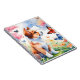 Aquarellmalerei eines bezaubernden Hundes, umgeben von Blume und Schmetterlingen.