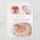 Baby Girl Birth Ankündigung 3 Foto Collage Cards. Elegante minimalistische niedliche Geburtsankündigung mit 3 Ihrer Lieblings-Baby-Fotos vorne, mit einem hübschen handgeschriebenen Text "hello" in einem Wirblen Kalligrafieschrift mit Swash oder Schwänzen in Rosa. Fügen Sie den Namen Ihres Babys auf der Vorderseite und die Geburtsdaten hinzu. Auf der Rückseite sind weiße Punkte rot-rosa Hintergrund. Man kann es leicht personalisieren.