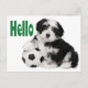 Wer kann dem süßen Gesicht eines Havanesischen Welpenhundes widerstehen? Diese niedliche Hello-Canine-Postkarte zeigt ein Schwarz-Weiß-Havanna-Welpe, das mit einem Fußball gespielt wird, der auf einem knusprigen weißen Hintergrund hervorgehoben ist. Dieses süße Jungtier ist bereit, Ihnen lassen Freunde und Familie wissen, dass Sie über sie denken.