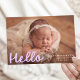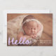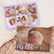 Herzlich willkommen bei Ihrem kleinen Foto mit dieser skurrilen Geburtshinweise, die das horizontale Foto Ihres Babys mit "Hello" in einem spielerischen Lavendel-Skript-Overlay zeigt. Fügen Sie den Namen Ihres Babys, das Geburtsdatum und die Statistiken auf der Vorderseite hinzu, um einen wirklich persönlichen Sake zu schaffen. Die Rückseite zeigt eine Collage von sechs quadratischen Fotos mit Platz unten, um Familiennamen oder eine herzliche Nachricht einzufügen. Eine tolle Wahl für kleine Mädchen oder traumhafte, pastellfarbene Themen.