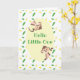 Niedliche Darstellung eines Affen aus dem Dschungel mit zwei geschälten Bananen. Hinzu kommt ein Dschungel mit tropischen Blätter.