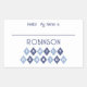 Begrüßen Sie Ihre Verwandten bei Ihrer Familienfeier mit diesem lustigen, individuell anpassbaren Aufkleber Namensschild Wort Art Design mit passenden geometrischen Formen verbunden miteinander. Die Vorderseite der Karte enthält diesen Designstil mit jeder Form, die einen Buchstaben enthält, um FAMILY WIEDERSEHEN in Hauptstadt zu buchstabieren. Es gibt eine Vorlage für den Familiennamen und einen Platz für jede Person, in ihrem Namen zu schreiben. Wie gezeigt, wechseln sich die Formen mit zwei trendigen Farben aus Hellblau und Dunkelblau ab, aber ALLE Farben in diesem Design können angepasst werden, einschließlich der Hintergrundfarbe, geometrische Formen, UND die Farbe des Texts in ihnen machen dieses Design ideal für jede Wahl von Farben, die die Persönlichkeit Ihrer Familie repräsentieren! Bitte nutzen Sie die Zazzle-Nachricht, um mich zu kontaktieren, wenn Sie Fragen haben.