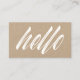 Hallo Modern White Script Rustic Kraft Visitenkarte