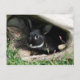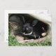 Schwarzer Otter farbener Hasen, der aus einem hohlen Stein herauspuckt