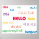 Dieses helle und farbenfrohe Plakat sagt hallo in vielen verschiedenen Sprachen, darunter Französisch, Englisch, Spanisch, Norwegisch, Gälisch, Chinesisch, Deutsch und vieles mehr!