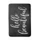 Hallo schön im modernen weißen Skript auf einem schwarzen Hintergrund. Die Hintergrundfarbe kann unter Verwendung der Kundenbezogenheitseigenschaft leicht geändert werden.
