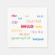 Ein lustiges Design, das Hallo in vielen Sprachen wie Französisch, Japanisch und Italienisch sagt. Ideal für Treffen und Begrüßungen!