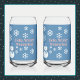 Ein Slice of Life and Delight präsentiert Hallo, Winter Wonderland kann Glas mit einem Schneemann mit weißen Schneeflocken, rosa Schrift und einem blauen Hintergrund. Der Schneemann kann auch Glas haben einen blauen Hut und Schal.
