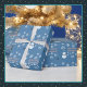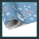 Ein Slice of Life and Delight präsentiert Hallo, Winter Wonderland Packpapier mit einem Schneemann verziert mit weißen Schneeflocken, rosa Schrift und einem blauen Hintergrund. Der Schneemann hat auch einen blauen Hut und Schal.