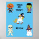 "TRICK ODER BEHANDELN" POSTER MIT MONSTERN UND PERSONALISIERTEM NAMEN FÜR KINDER.