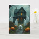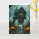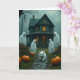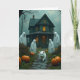 White kitten is getting away from the haunted house and ghosts. AI generated, edited by myself.