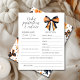 Feiern Sie die Ankunft eines kleinen mit unseren charmanten Halloween-Thema Baby Shower Vorhersagen und Ratschläge! Sie sind der perfekte Set für eine Babydusche im Halloween-Stil, die mit einem hübschen Orange- und schwarzen Coquette-Bogen auf weißem Hintergrund aufwartet.