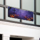Dieses Banner wird mit einem festlichen Halloween Kürbis Spuk Hausbild-Druck gezeigt. Draußen gezeigt. Passen Sie dieses Banner an oder kaufen Sie, wie es ist. Wählen Sie aus vielen Größen, innen oder außen.