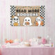Bring some spooky fun to your shelves this fall with this “Read More BOOOOks” Halloween banner — the perfect printable for schools, school libraries or a city or public library display! Featuring adorable ghosts reading books, bold black-and-white checkerboard, and playful Halloween vibes, this sign makes a statement that’s both festive and literary.