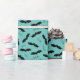 Halloween Fledermausverpackungspapier mit 'Boo' und 'Spooky' Text auf aquamarin/türkisfarbenem Hintergrund. Die Hintergrundfarbe kann im Designwerkzeug geändert werden. Matching-Elemente verfügbar. Kunstwerke von Künstlern eigene Illustrationen. Bitte kontaktieren Sie mich für die Anpassung und spezielle Anfragen. © Zoe Chapman Design