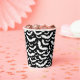 Der Papierbecher aus Halloween-Party wird mit einem Fledermausdruck gezeigt. Farbe Schwarz Passen Sie dieses Objekt an oder kaufen Sie, wie es ist.