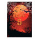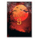 Halloween Hochzeitskarte mit einem unheimlichen gruseligen Hintergrund in leuchtend orangefarbenem Mond, mit totem, verrottenden gruseligen Baum, Spinnennetzen und fliegenden Fledermäusen.