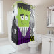Ein beängstigender und doch niedlicher Halloween-Duschvorhang zeigt Frankenstein in einem Friedhof mit einem Gnadenbaum, einen schwarzen schmiedeeisernen Zaun, einen Grabstein mit Schädel und Kreuzknochen, der RIP, Spinnennetz und Spinne liest!