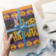 Orangefarbene und grüne Spinnennetze. Das mittlere Bild hat ein klassisches Halloween-Motiv. Subtile und detaillierte Gestaltungselemente wie beängstigende Augen, Fledermäuse und ein Rahmen von Halloween-Kürbissen. Du wirst es Liebe geben! Alle Bilder und Kunstwerke ©JESTERFUL Geschäft.