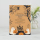 Das Design zeigt eine Halloween-Party-Einladung zum Geburtstag eines Kindes mit halloween Geist, Kürbis, halloween Bäume, Spinne etc. Das Design ist einzigartig und elegant und wird für jedes Kind geeignet sein.