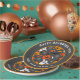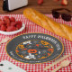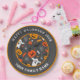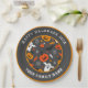 Traditionelle Halloween-Farbauswahl von Symbolen in einem nahtlosen Muster und anpassbarem Text.