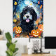 Halloween Bernedoodle mit Pumpkins Beängstigend Poster