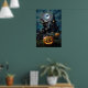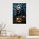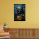 Furchtbar fabelhaft: Erleben Sie die Spooktacular! Eine mystische schwarze Katze in einem Hexenkostüm mit spitzenem Hut, die auf einem Besen steht, fliegt gestohlen über eine dunkle Burg und landet auf dem Vorhof mit lachenden Kürbissen. Das Fell ihrer Katze glänzt mit einem strahlschwarzen Schimmer und kontrastiert wunderschön mit dem unheimlichen Hintergrund. Ein Vollmond am Himmel mit umherfliegenden Fledermäusen intensiviert diese zauberhafte Szene, die Halloween einfängt, um Sie und Ihre Freunde mit der göttlichsten Zeit des Jahres zu verzaubern und zu begeistern! ©2024 Tan Choon Hong. Alle Rechte vorbehalten.