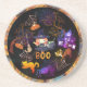 Viel Spaß mit diesen niedlichen Halloween-Untersetzer auf einem dunkelschwarzen Hintergrund mit vielen süße Figuren: eine kleine Hexe, Bäume, Spinnennetze, niedliche Kürbisse, Katzen und mehr. Die Dekoration ist sehr schön, um Halloween-Charme auf den Tisch zu bringen.
