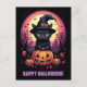 Halloween Black CAT mit Pumpkin und HexenhAT Postkarte