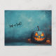 Dieses personalisierte Halloween-Foto auf der Postkarte bietet einen blauen Jack-o-Lantern Kürbis mit einem anpassbaren Text.