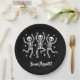 Diese Papierplatte ist in einem festlichen Halloween Skelett Bone Appetit Print Design gezeigt. Farbe Schwarz Passen Sie dieses Objekt an oder kaufen Sie, wie es ist. Lizenzierte Printwerbung
