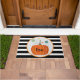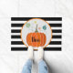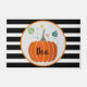 Halloween "Boo" Pumpkin Doormat. Das ist niedliches Halloween-Design in modernen schwarz-weißen Streifen.