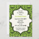 Skulls Damask grün, schwarzes Muster Halloween Hochzeit Braut Dusche Einladung. Dieses formale, elegante Design besticht durch ein Damast-Blumenmuster und Schädelmuster sowie durch einen Elfenbeinrahmen in der Mitte. Klassisches, aber zeitgemäßes Design mit Vintagem Schriftart. Elegantes, sprichwörtliches Design, perfekt für gotische oder Halloween-Hochzeiten im Herbst.