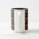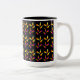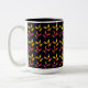 Une tasse à café avec un motif coloré de maïs bonbon d'Halloween en jaune et orange avec une bordure orange sur le noir.