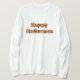 Dieses Halloween-Shirt hat den Text "Happy Halloween" mit einem Bonbonmuster gefüllt.