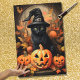 Verwandeln Sie Ihre Handwerkskunst mit unserem zauberhaften Halloween-Deko-Papier! Inmitten lebendiger Herbstlaube mit einer hübschen schwarzen Katze einen Hexenhut. Erhöhen Sie Ihre Projekte noch heute!