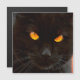 Mysteriöses Gesicht und gelbe Augen einer schwarzen Katze, die Halloween feiert.