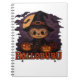Halloween Cats Pumpkins Schwarze Hintergrund Illus Notizblock