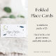 Mit dieser gedruckten Halloween-Platzkarte aus der Kollektion "A Baby is Brewing" von Redwood & Vine Design Co. Mit einem Aquarellmond, Fledermäusen und Sternen vorne und einer Kessel-Zelt-Illustration auf der Rückseite fügt diese gefaltete Zeltkarte Ihrem Baby eine bezaubernde Touch hinzu.