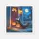 Ein großer, Cartoon-ähnlicher Zentipede hält Jack-o'-Laternen, während er nachts vor einer roten Tür in einem Vorstadtviertel stehend ist